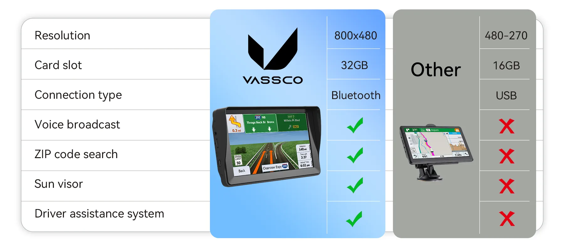 The Vassco device utilizes an advanced GPS satellite positioning system to maintain a stable signal, even in complex urban environments or remote mountainous areas. It can quickly and accurately capture your location, ensuring every route plan is precise and giving you a reliable navigation experience.